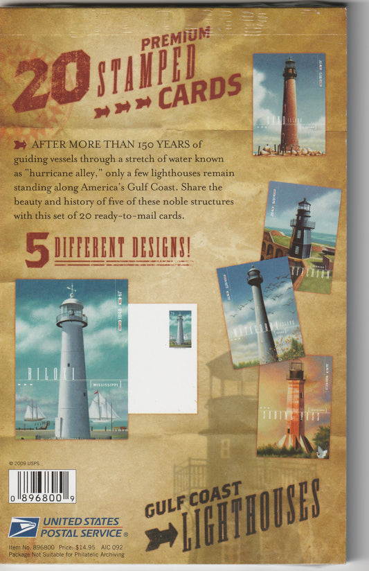 Unopened Premium Stamped Cards (20) - Gulf Coast Lighthouses