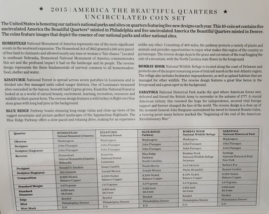 2015 - America The Beautiful Quarters - Uncirculated Coin Set