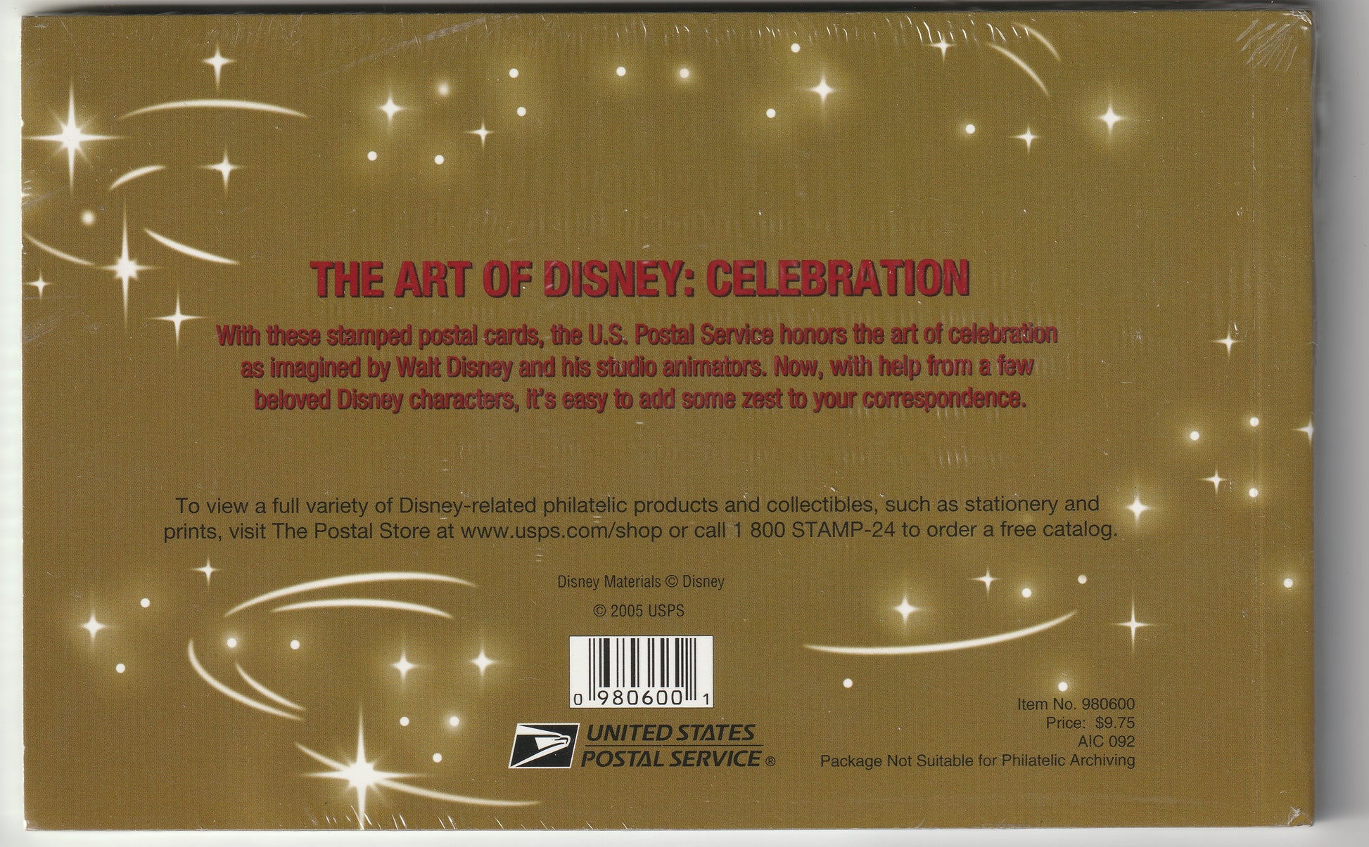 Unopened Premium Stamped Cards (20) - Disney Celebration