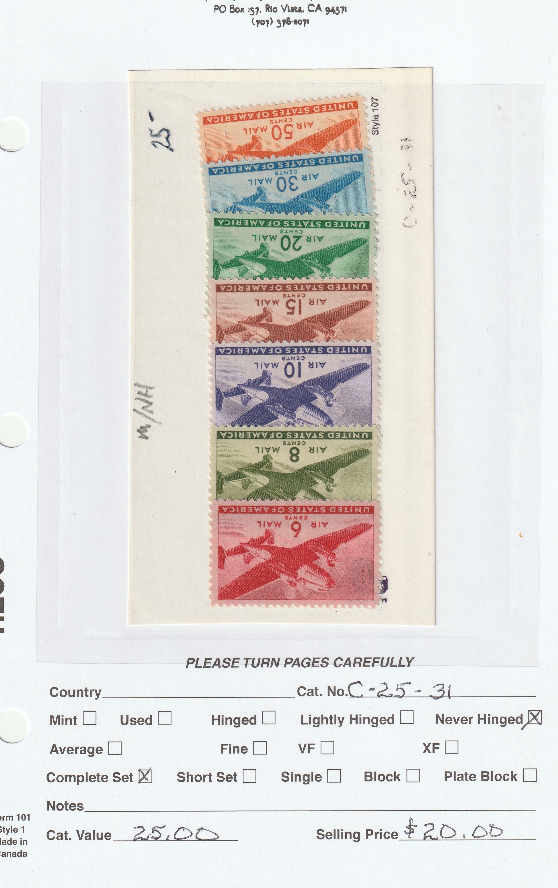 U.S. Air Mail Postage Stamps - Never Hinged Complete Set